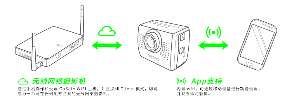 GoSafe WiFi 拥有专属 APP 程序,同时支持 iOS 与 Android 两大平台。( 手机扫描即可下载 )